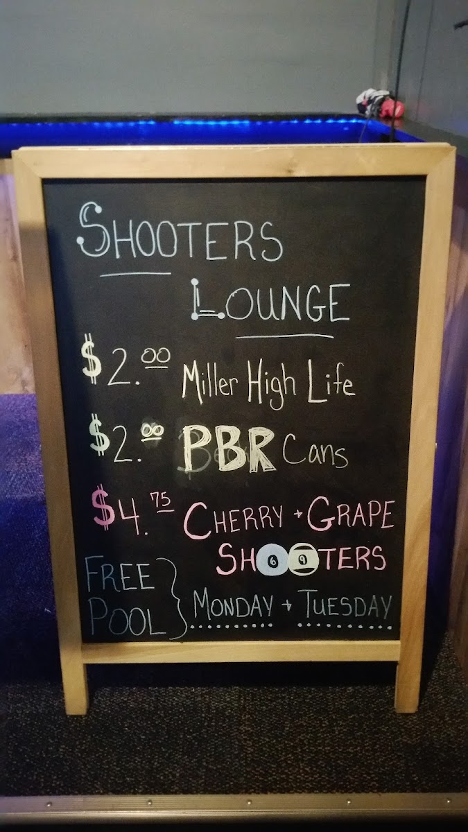 Shooters Lounge Menu